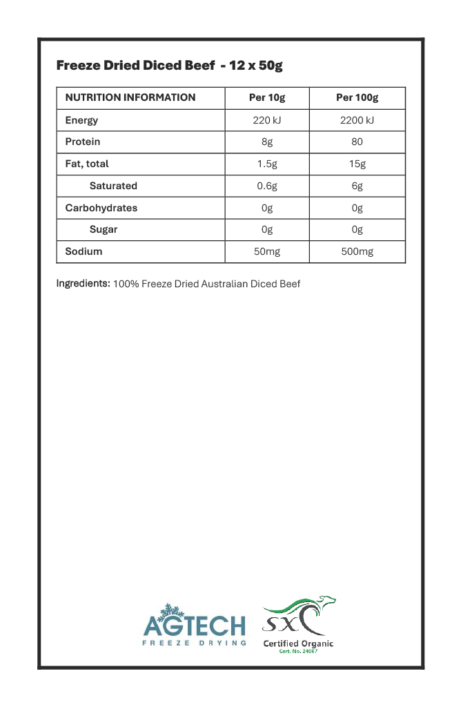 - Ingredients: 100% Australian Beef (freeze-dried)